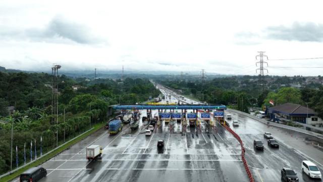 Gerbang Tol (GT) Cikampek Utama beroperasi secara penuh untuk layani kendaraan menuju arah Jakarta saat arus balik Lebaran 2025. (Jasa Marga)